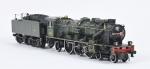 M.T.H écart. O, belle locomotive 231 E SNCF verte et noire, électrique, avec possibilité de transformation deux rails et trois rails dans le tender charbon à boggies. L. Totale 56 cm.