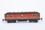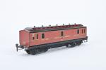 Reichert écart. O, wagon Postes et Télégraphes n° 106 Paris - Lyon, rouge, toit noir, à boggies, (petites piqûres de rouille sous la base, écaillures). 35 cm.
