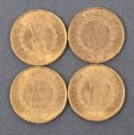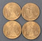 Quatre pièces 20 Francs or Génie 1886. Vendue sur désignation. Frais acheteur réduit à 14.28 % TTC.