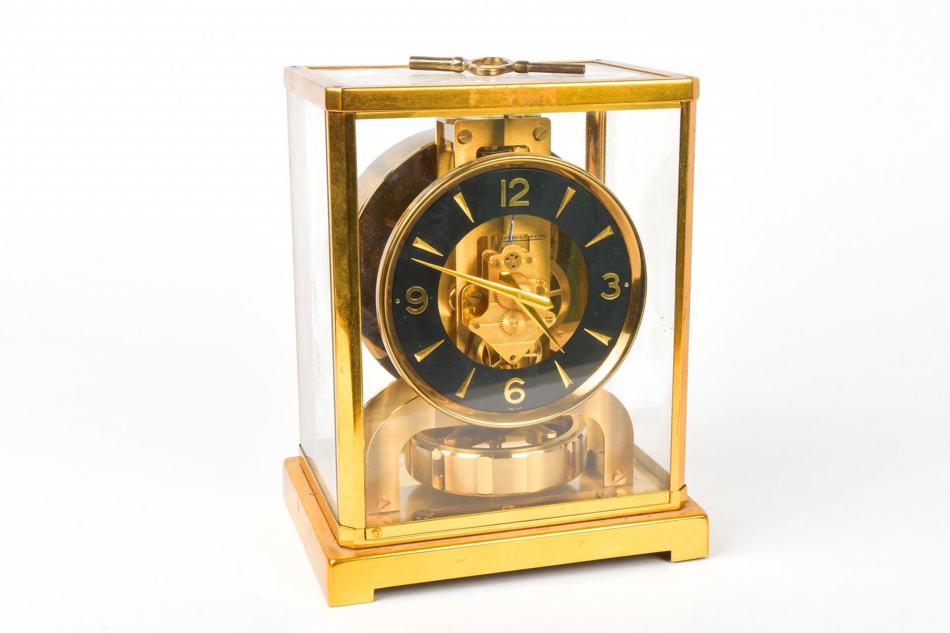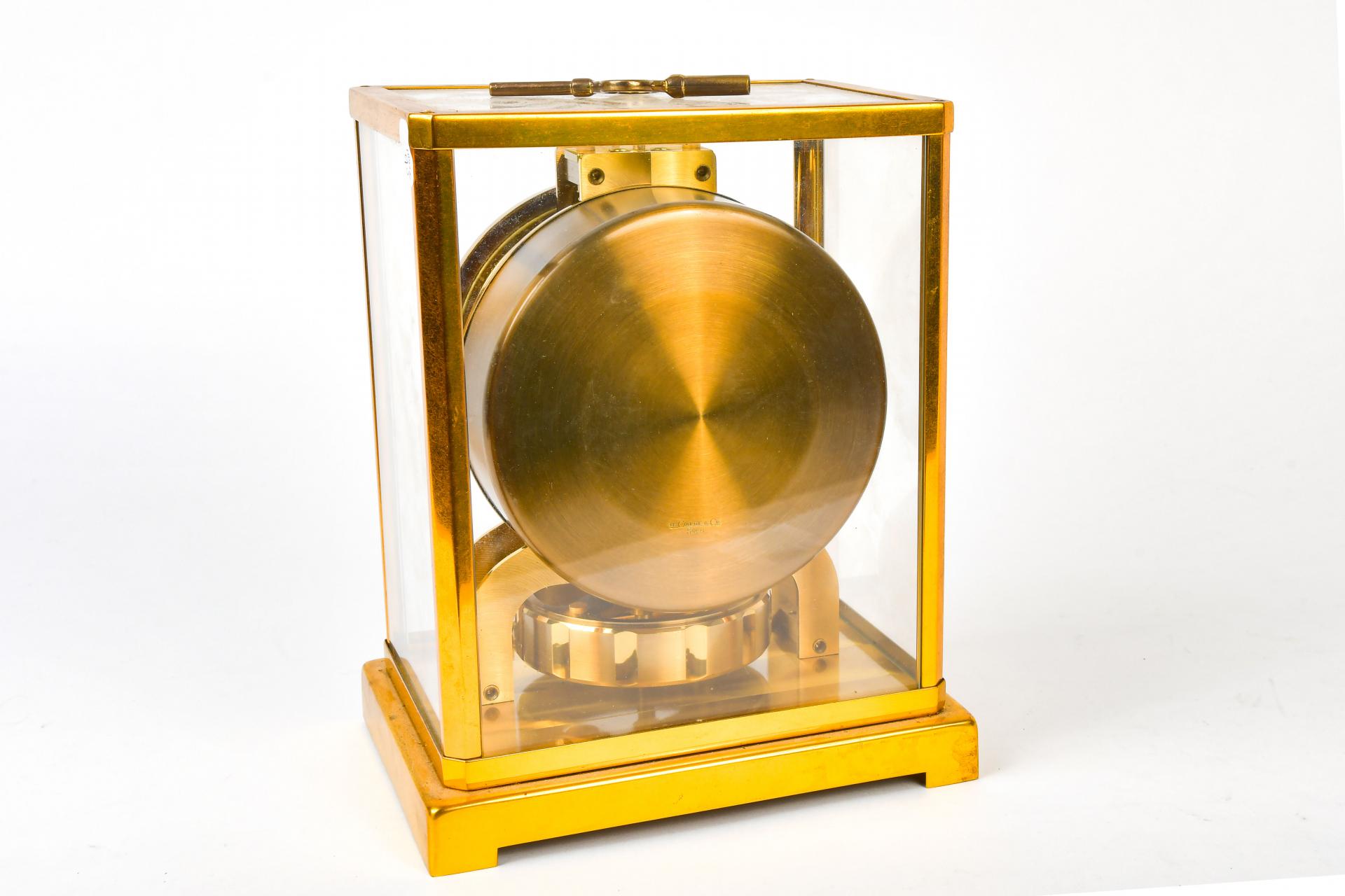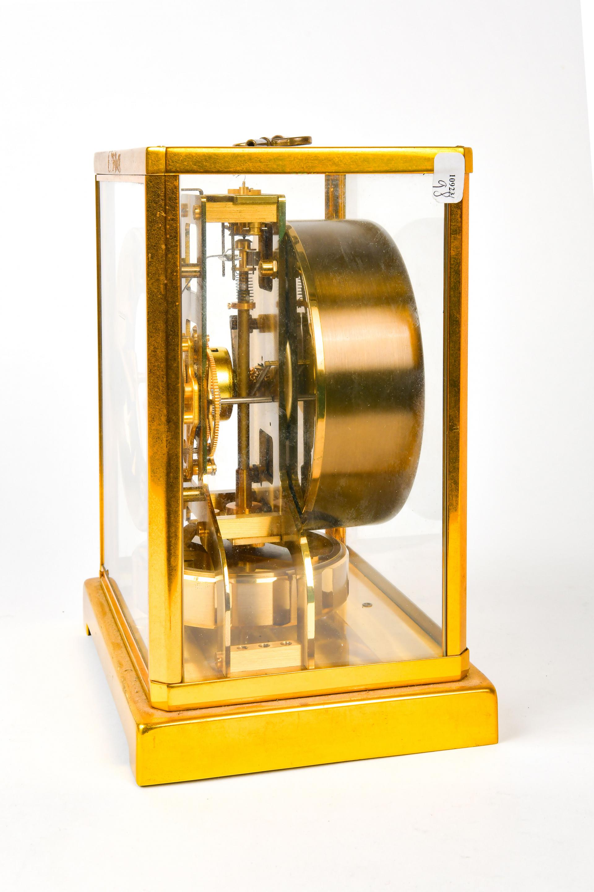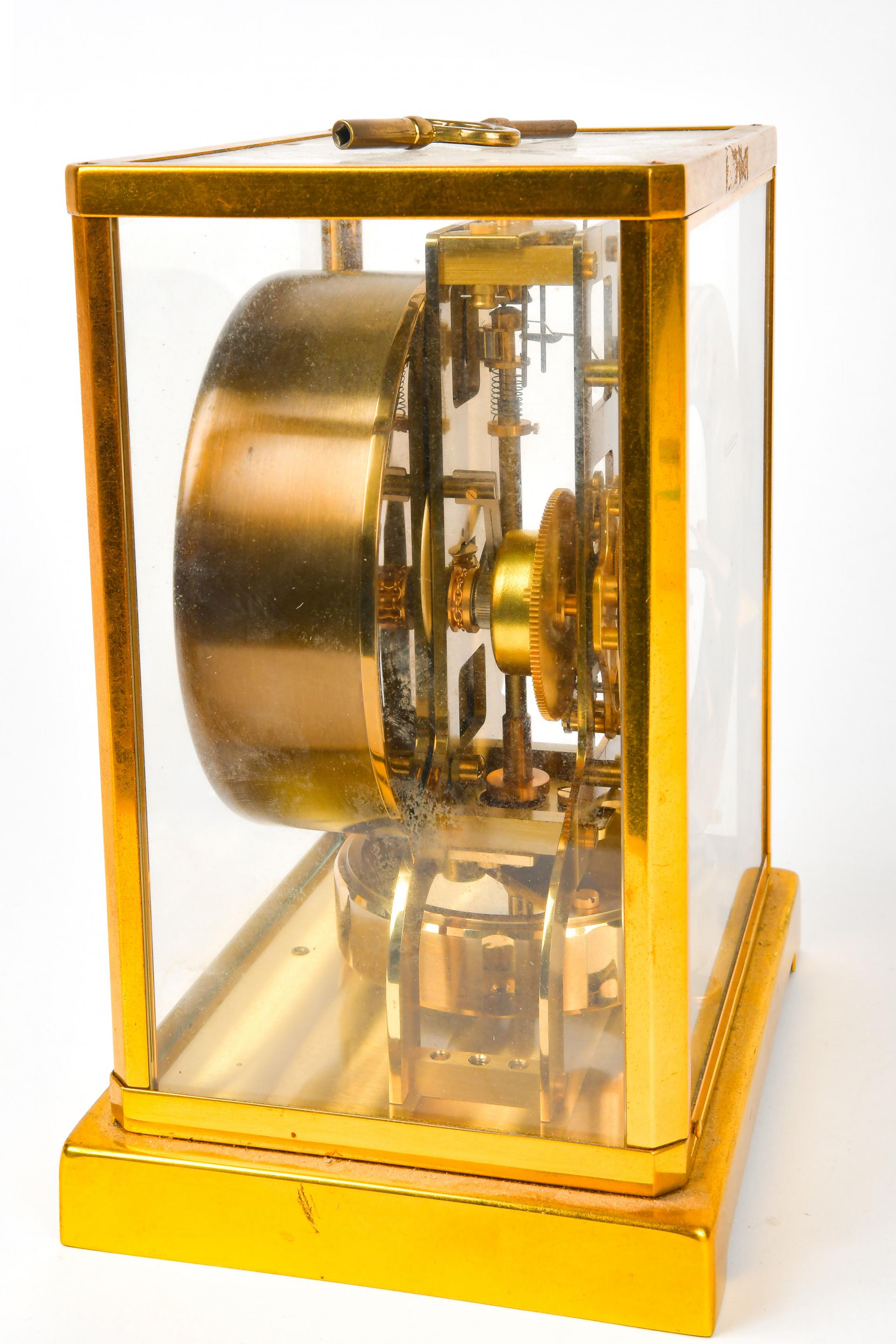 Pendule ATMOS monture à cage en laiton doré. Cadran noir partiel, chiffres arabes, index et aiguilles lances, mouvement mécanique à remontage atmosphérique, calibre 526-5 en l'état (semble fonctionner). Monture signée. Traces de rouilles, oxydation, petits chocs et rayures. Dim. 22 x 16,50 x 13,50 cm.