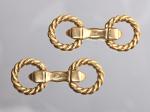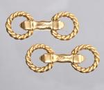 Paire de boutons de manchette en or jaune 18K 750 millièmes, modèle étrier, parés de deux motifs en fils torsadés articulés par un ressort. Travail français, poinçon attribué à l'atelier JONSSON Claude. Signés et numérotés 011248. Traces d'usage.