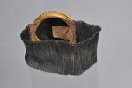 Bracelet manchette en mailles tissées métalliques avec médaillon en acier, le fermoir en métal doré...