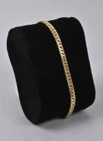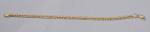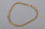 Gourmette en or jaune 18K 750 millième, maille aplatie, fermoir mousqueton. Traces d'usage marquées. Longueur 19,50 cm - Poids : 4 g. Expert : Paul-Louis Flandrin