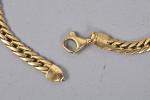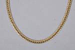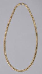 Collier en or jaune 18K 750 millièmes, maille aplatie, fermoir mousqueton (cassé). Traces d'usage. Longueur : 54,50 cm - Poids : 20,60 g. Expert : Paul-Louis Flandrin