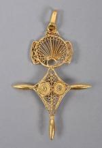Croix du sud en or jaune 18K 750 millièmes, filigranée. Poids : 6,70 g. Expert : Paul-Louis Flandrin