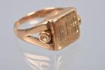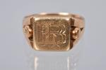 Chevalière en or jaune 9K 375 millième, chiffrée. Taille de doigt 54 - Poids 4,60 g. Expert : Paul-Louis Flandrin