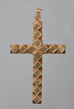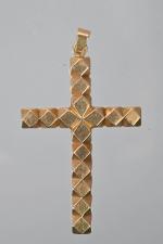 Pendentif en or jaune 18K 750 millièmes formant croix. H. avec bélière : 5 cm - Poids : 2,30 g.