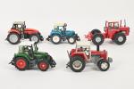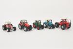5 tracteurs agricoles échelle 1/32ème dont Massey Ferguson et Vario Farmeur 412 et 411. Petites usures.