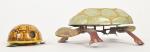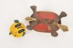 Tortue mécanique à carapace, tête et queue plastique, pattes en tôle, l . 15 cm (usures). On y joint Lehmann, épave de tortue Susi-Baby.