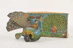 K pi, paon mécanique en tôle lithographiée, dans sa boîte, l. 19 cm (petites usures).