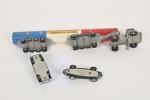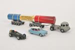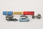 CIJ, Tracteur Routier Renault, gris, avec remorque "Pile nucléaire, échangeur de chaleur E.D.F. MARCOULE", (TBE). On y joint deux SOLIDO Citroën Ami 6, bleu, toit blanc et Vanwall F1 n° 3, verte. TBE.