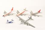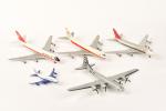 CORGI, AERO MINI ET MAJORETTE, cinq modèles réduits d'avions de ligne, Longueur max. 22 cm environ. (TBE).