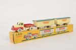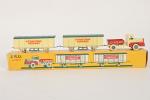 JRD, réf. 124, Tracteur Unic 6 cylindres Cirque attractions foraines, avec tracteur et deux remorques, scotch et manques abattants, (TBEB3).