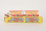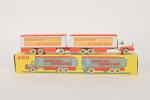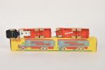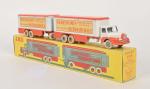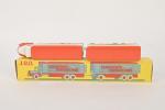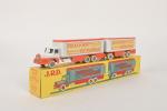 JRD, réf. 127, Camion Grand Routier Châssis unique 6 cylindre type "Lautaret", remorque Fruehauf des Transports Internationaux, orange et blanc, (TBE) dans une boîte fac-similé.