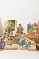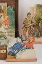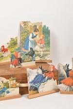 Le Petit Chaperon Rouge Ensemble de 14 scénettes formant diorama en bois découpé et chromolithographies.