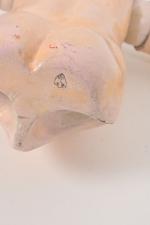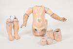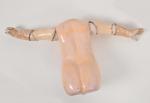 Schmitt, corps tout articulé à huit boules poignets fixes, porte l'étiquette du Magasin de Madame Guillard à Paris, (usures et à rattacher). 48 cm.