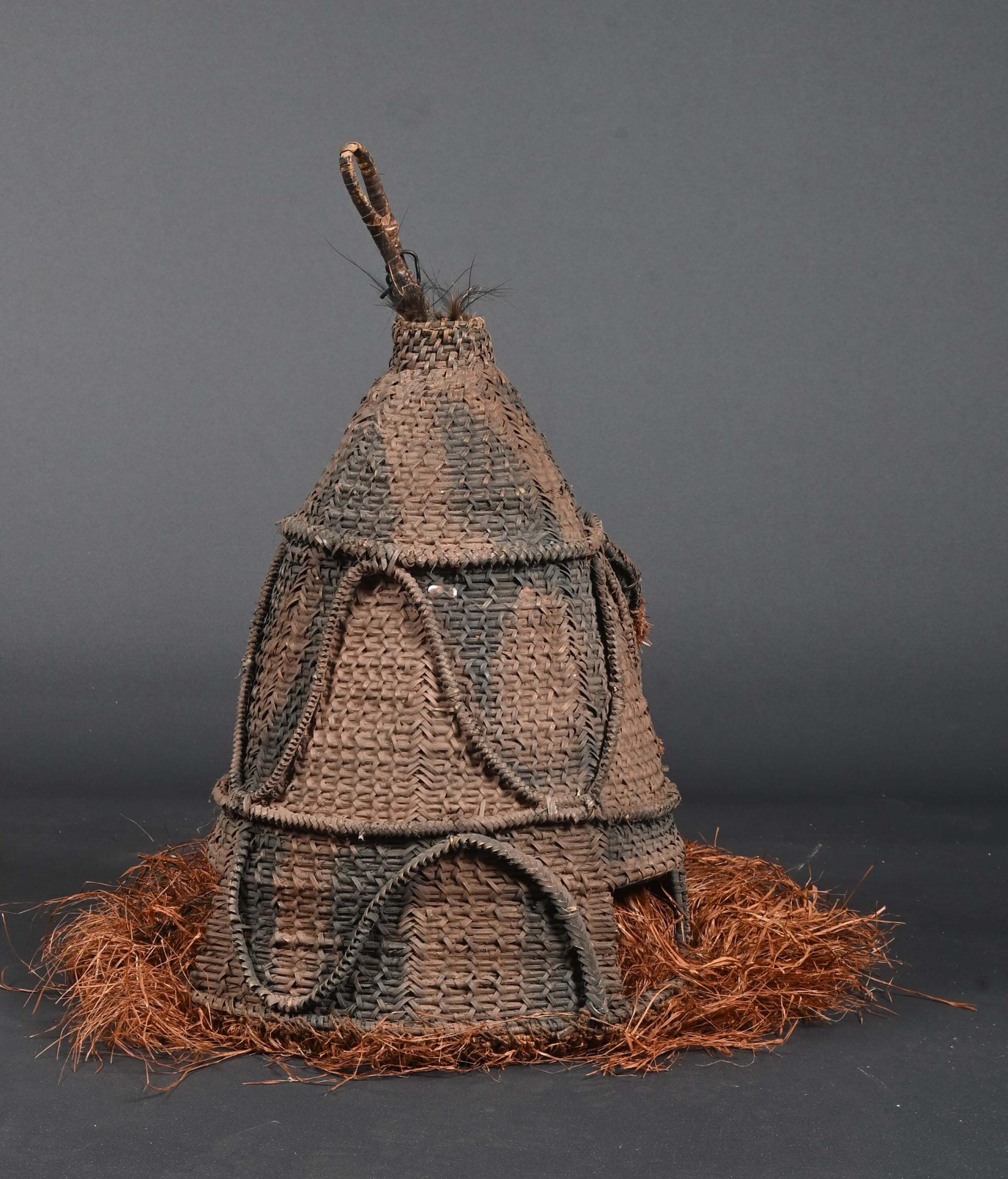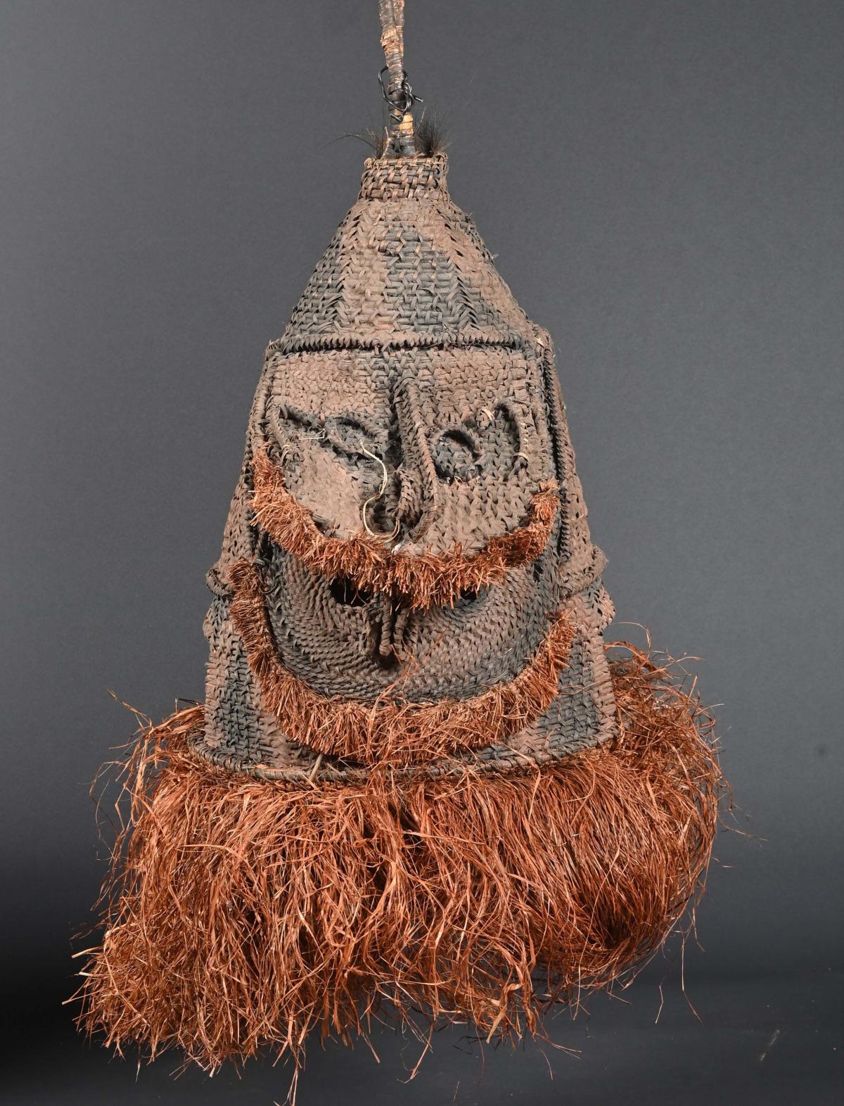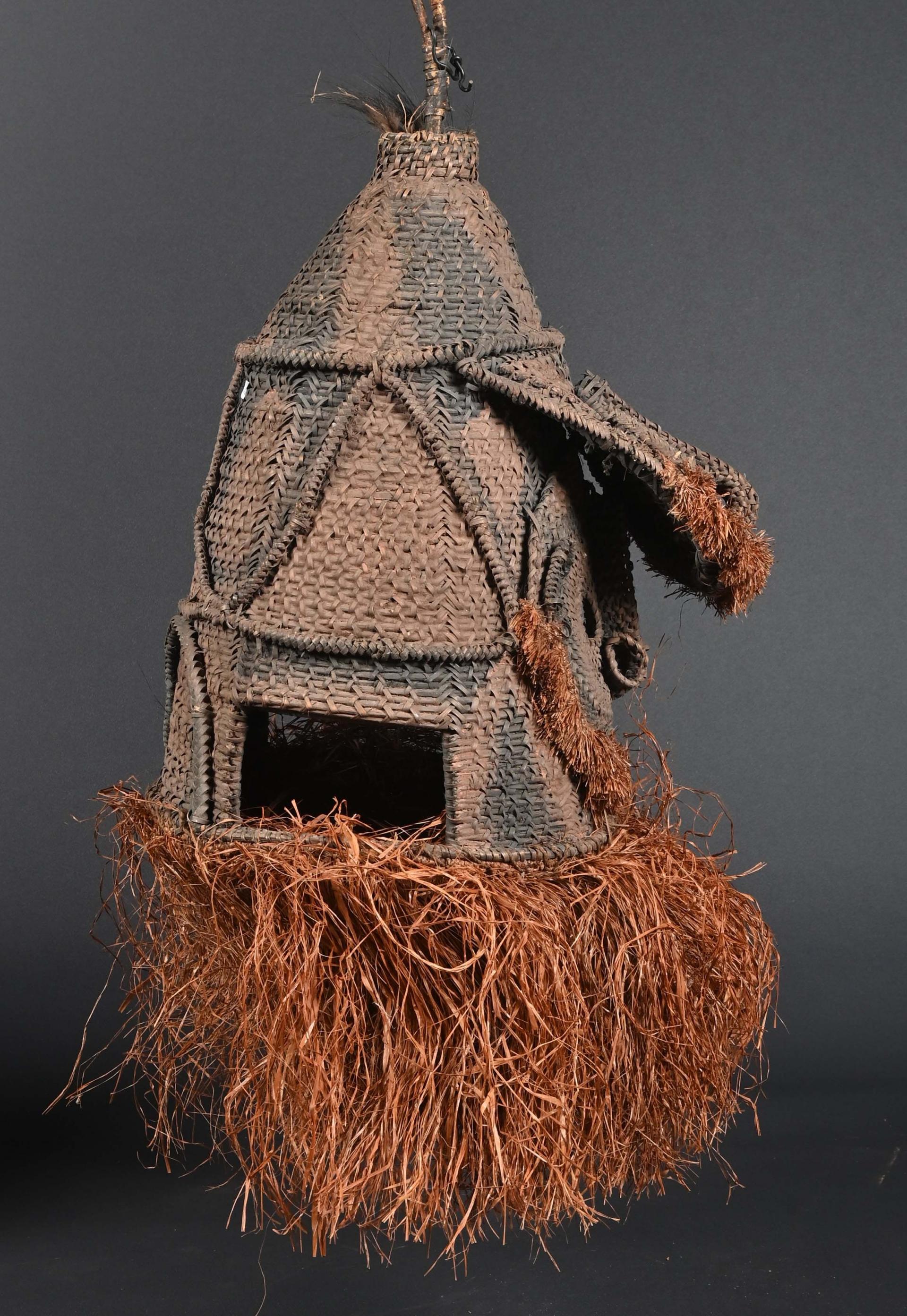 Important masque heaume « Baba Tagwa » qui était porté avec une longue jupe de feuilles pandanus.