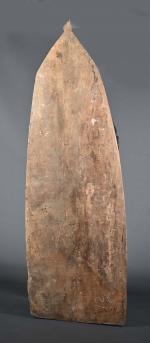 Grand panneau cérémoniel orné en champlevé d'un décor symbolisant la relation entre le mondes esprits et les vivants. L'agencement iconographique de cette œuvre ancienne transcende sa fonction première par sa beauté ornementale d'une grande modernité.