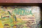 Huile sur panneau, signée en haut à gauche et datée 1959. Située Nouméa en haut à droite.