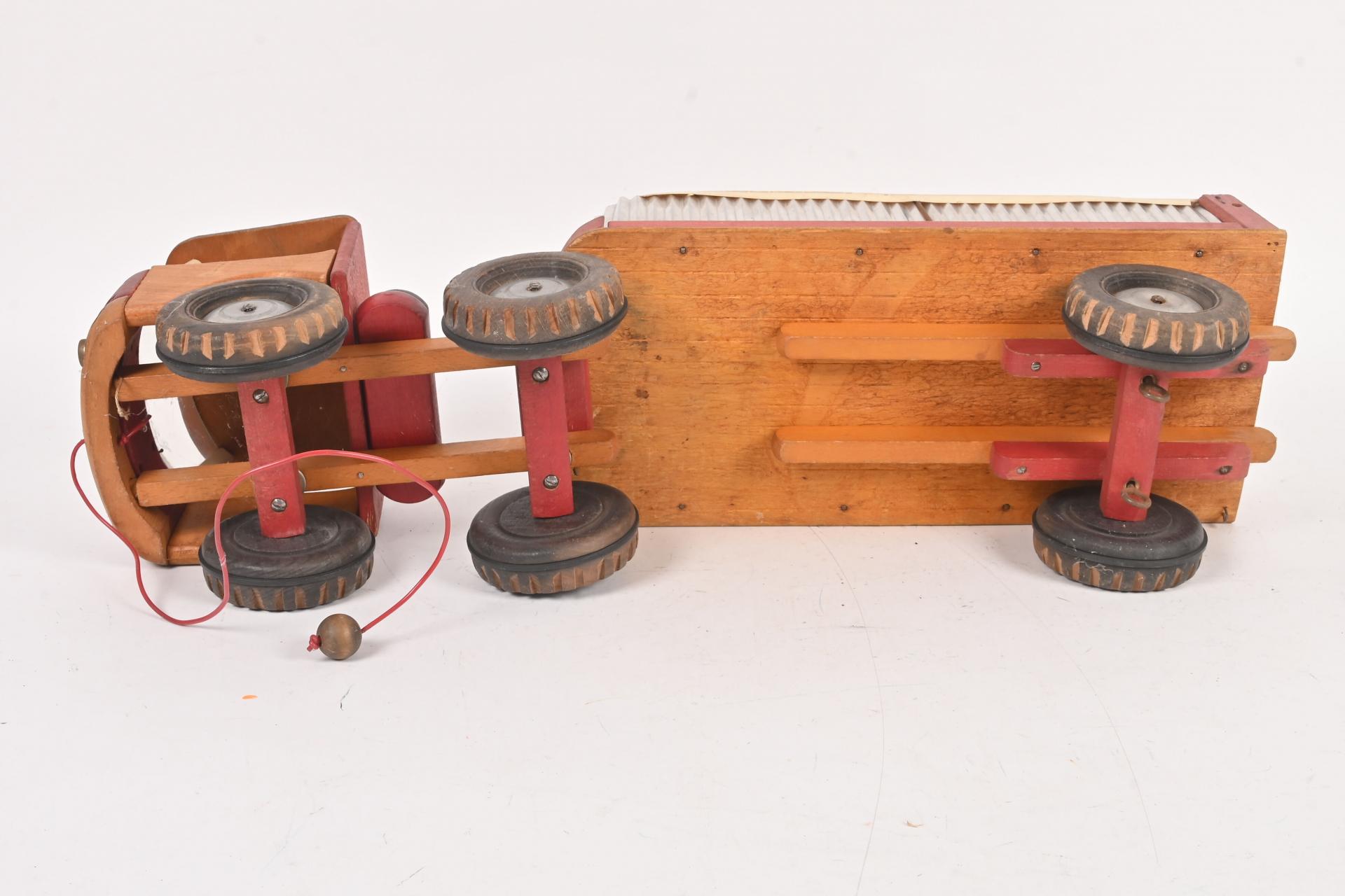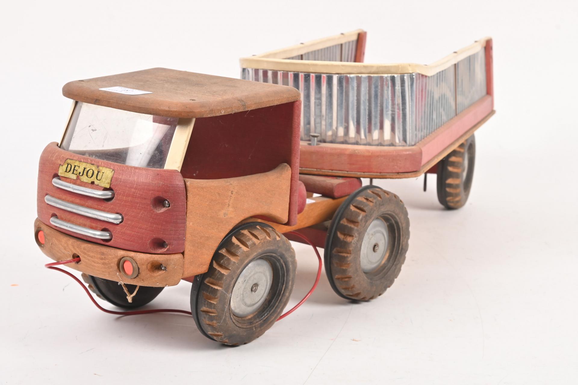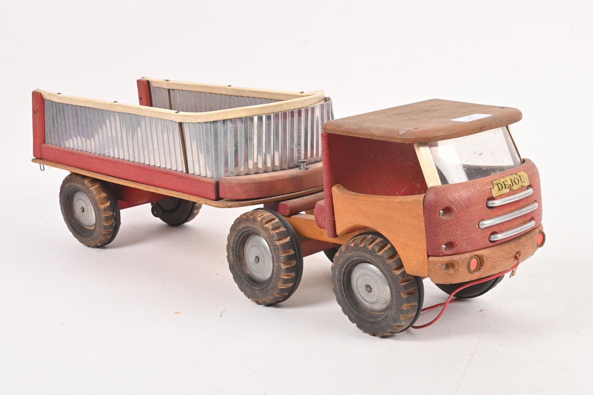 Dejou, camion de chantier à traîner en bois, (petites usures). 61 cm.