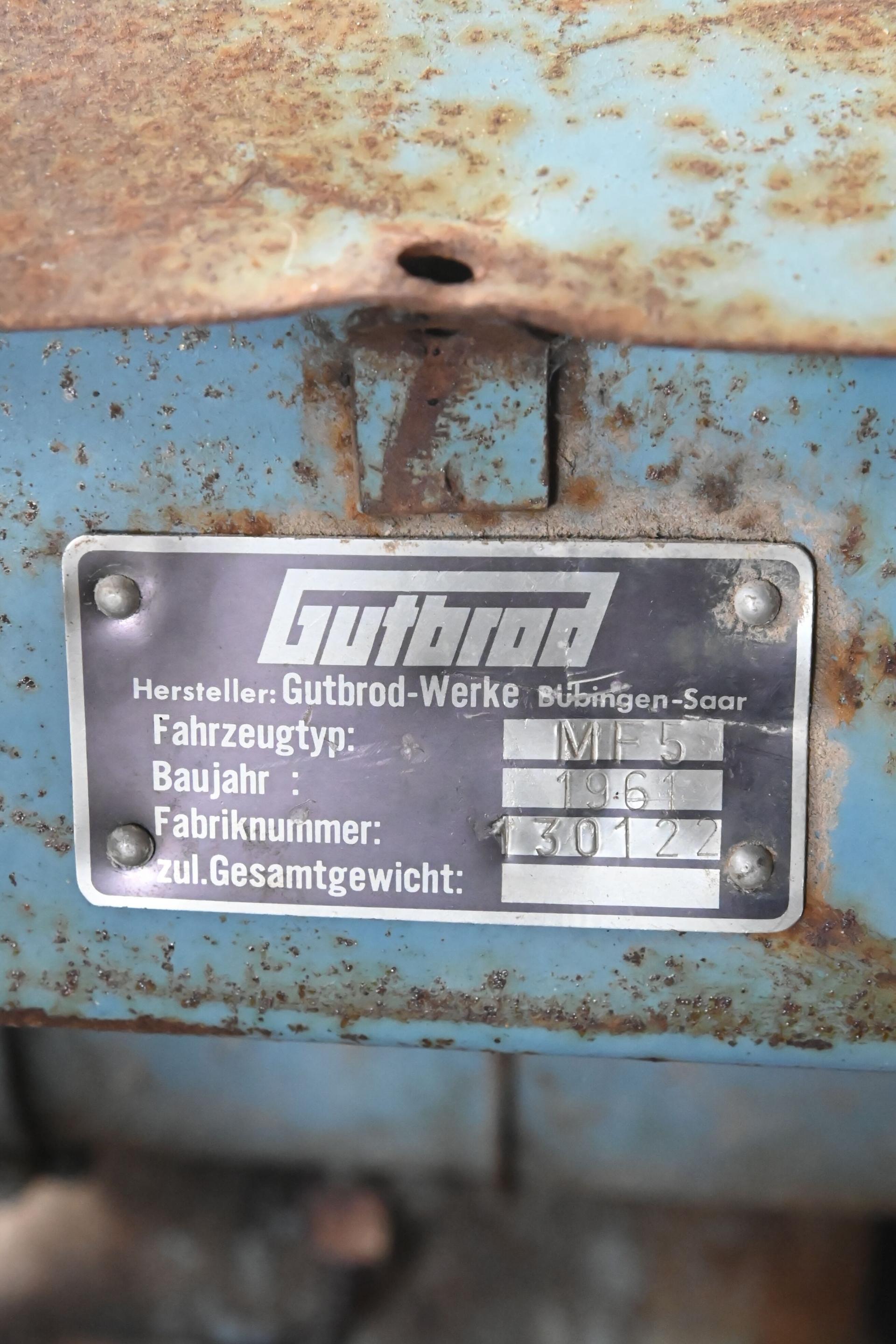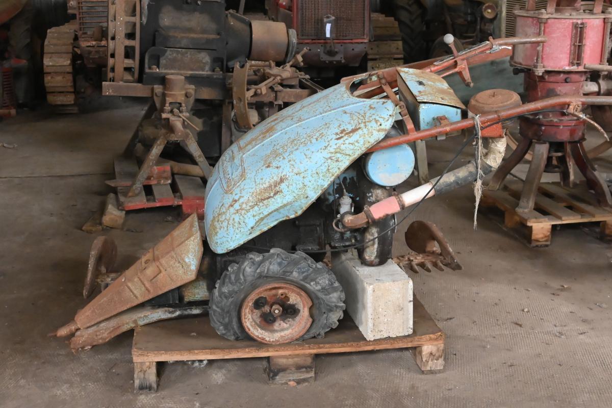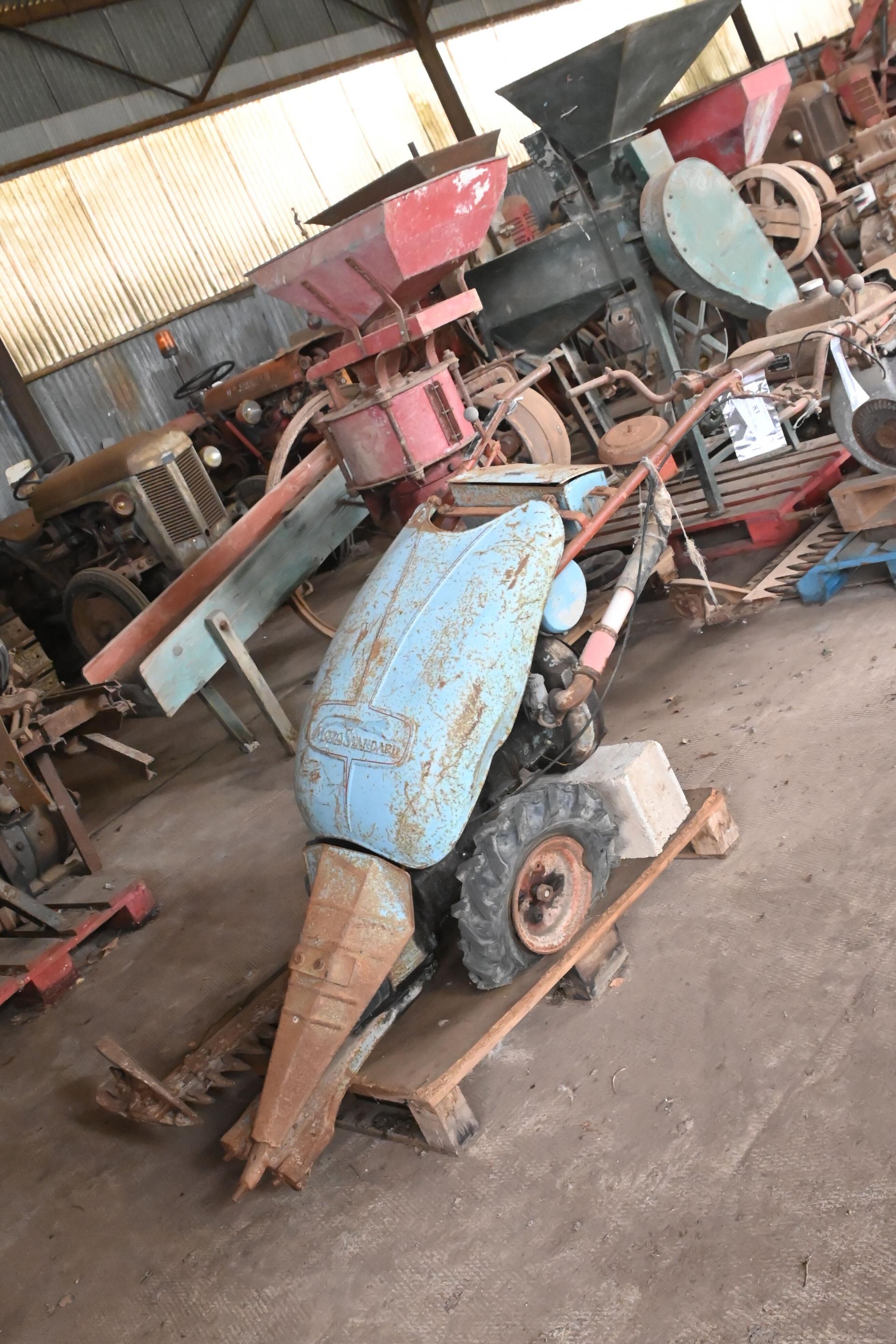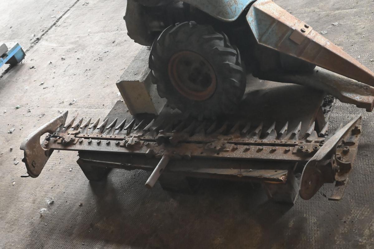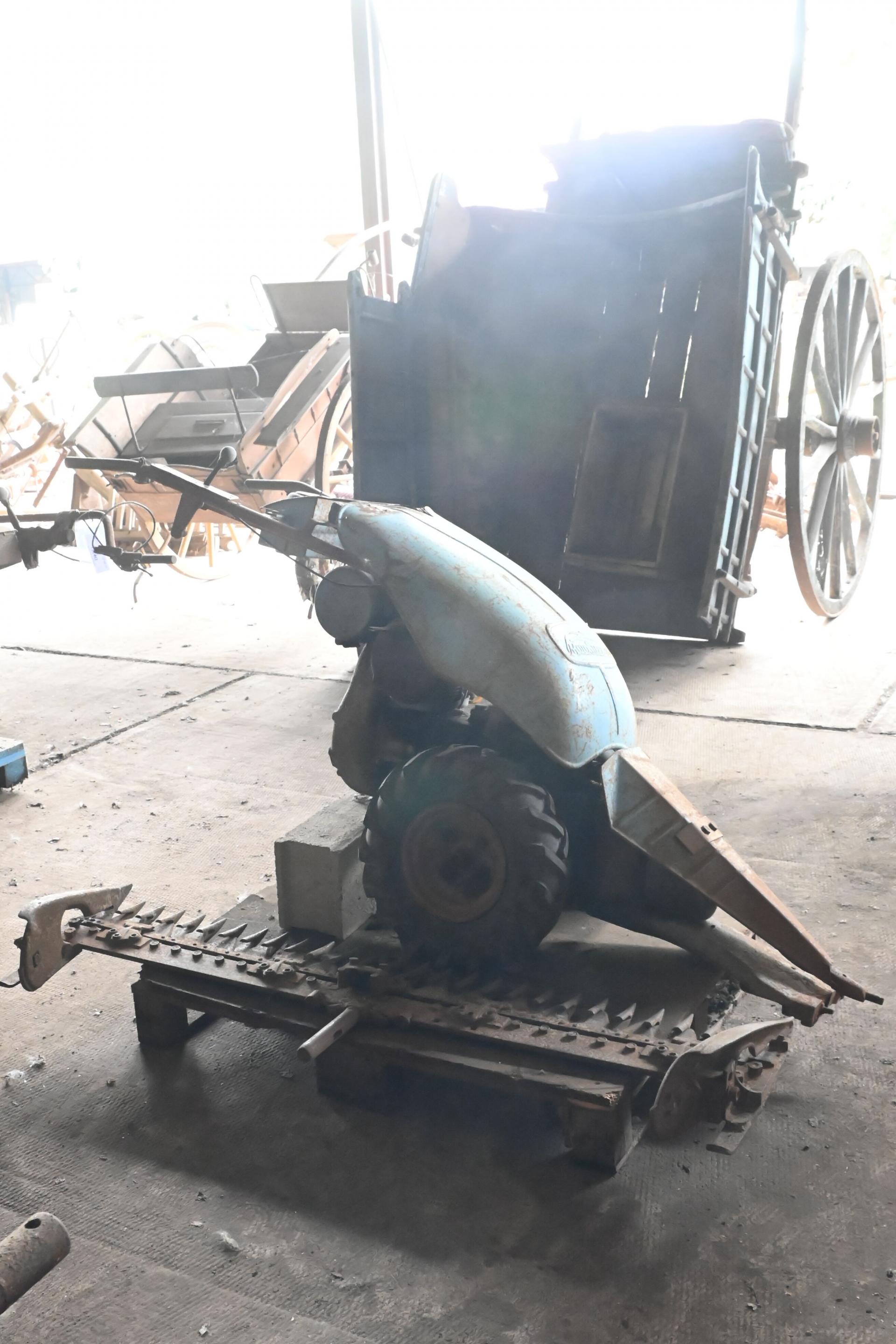 Motofaucheuse MOTOSTANDARD type MF5 n°30122 1961, en l'état, moteur Gutbord type 171 de 5ch, sur roues pneumatique, 1 roue HS, barre de coupe déposée de 1m40.