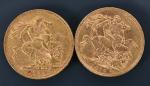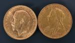 Deux Souverains en or de 1900 et 1912. (Usures) Vendues sur désignation.