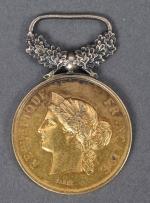 Décoration civile en or jaune 18K 750 millièmes et bélière en argent marquée "Ministère de l'intérieur 1883". Poids : 16,12 g. H. avec bélière : 4 cm.