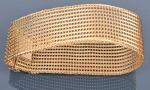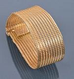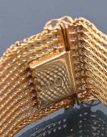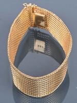 Bracelet demi manchette en or jaune 18K 750 millièmes à mailles souple, fermoir cliquet, sécurité. (Usures). L. : 20 cm - l. : 2,7 cm. Poids : 44 g.