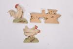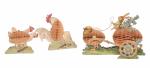 Trois éléments décoratifs en carton lithographié et papier crépon formant pop up. Travail vers 1900. H. max. 14 cm.