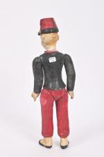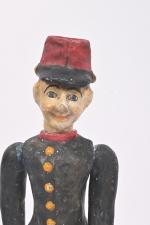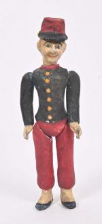 Soldat, personnage en composition peinte et moulée, tête pivotante, corps semi-articulé (usures). 35 cm.
