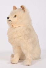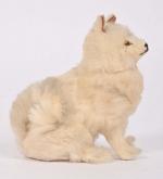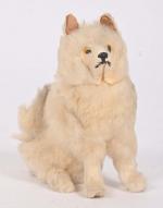 Loulou assis en composition gainée de poils de lapin, yeux de verre. H. 9,5 cm.
