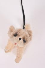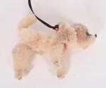 Petit chien en peluche corps articulé par des fils de fer, (usures). H. 6 cm. L. 12 cm.