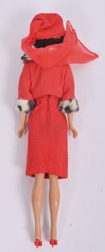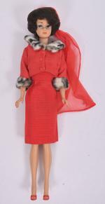 Mattel, Barbie, Bubble brune, rouge à lèvres rouge, costume, jambes raides. Vers 1960. Bon état.