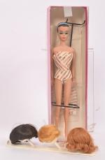Mattel, Barbie, Fashion Queen, avec présentoir. Vers 1960. On y joint trois perruques : titian, blonde et brune.