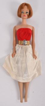 Mattel, Barbie, American Girl Titian, beau maquillage mais cou fendu. Les jambes plient bien, bouts de pieds mangés.