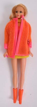 Mattel, Barbie, Francie blonde avec cils, jambes pliantes, avec tenue et bottes. Bel état. Vers 1960-70.