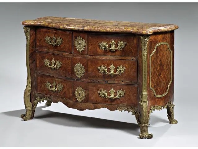 Commode à façade galbée et côtés incurvés, Epoque Louis XIV, France vers 1710 /1712 , modèle de Alexandre Jean Oppernordt