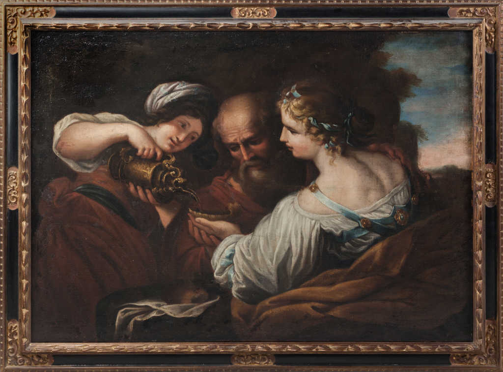 Attribué à Giovanni Battista LANGETTI (1625-1676). La mort de Caton d'Utique. Toile. 100 x 83 cm. SP