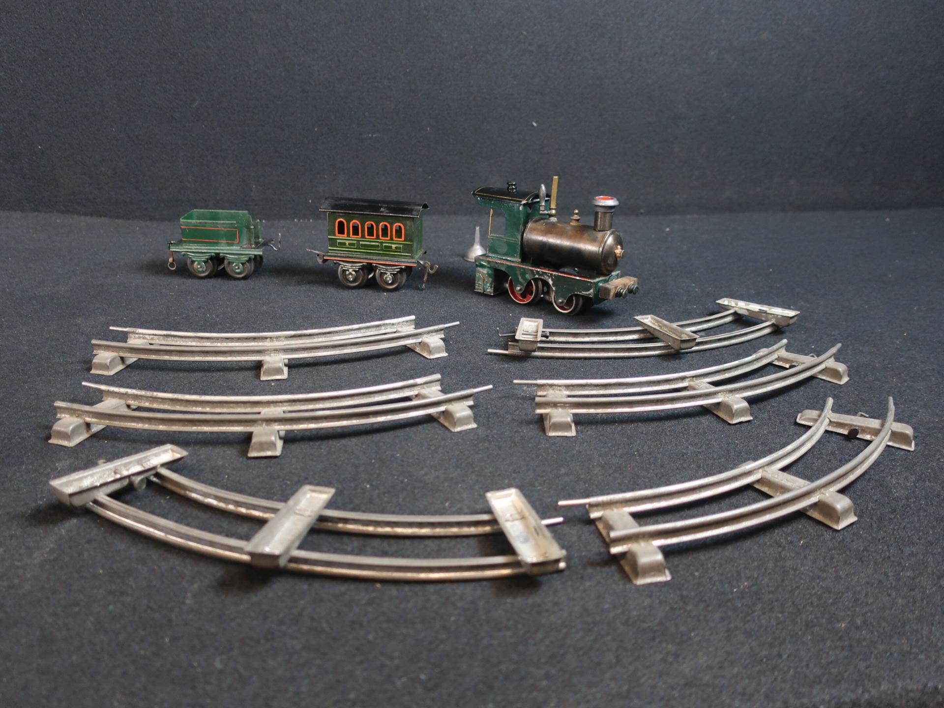 ERNST PLANK, Germany - Jouet en tôle peinte fin 19ème,Train à vapeur vive dans son...