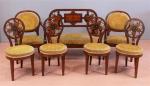 Mobilier de salon à la Reine d'époque Louis XV en hêtre sculpté de coquilles déchiquetées,...