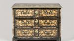 COMMODE à décor marqueté sur les faces et plateau de cubes à effet d'optique en...