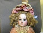 POUPEE tête porcelaine yeux ouverts bouche fermée, la tête marquée EJ 1, le corps en...