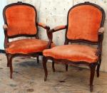PAIRE DE FAUTEUILS dossier à la Reine en bois naturel mouluré et sculpté, pieds cambrés Epoque Louis XV