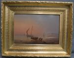 Théodore GUDIN (1802-1882) Bord de côte (Normandie ?) Huile sur bois signée en bas à gauche 26,5 x 39 (cadre doré)