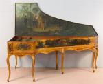 409 - CLAVECIN BARTOLOMEO STEPHANINI, 1714. Clavecin italien signé sur la gorge dans un cartouche : « Bartolomeo Stephanini / Luc facebat, anno MDCCXIV » ; et sur la face intérieure : « Bartolomeus Stephanini / Luc / « facea cabatte » Anno Domini / 1716 ».La caisse est formée d'éclisses en cyprès et d'un fond en peuplier. La table en épicéa, vernie et décorée de motif floraux, s'ouvre sur une rosace en carton doré, daté à l'intérieur 1890. Le clavier est composé de 48 touches en chêne, plaquées de bois noirci pour les feintes et de buis pour les marches. (Do, octave courte do.). Deux jeux de huit pieds dont un réglable. Quelques sautereaux anciens sont encore utilisables.Le clavecin est contenu dans un meuble de style Louis XV, fabriqué et décoré autour de 1890. L'instrument a été entièrement « reconditionné » entre 1890 et 1892 :notamment la table, la rosace et le fond. ( « Réparé par Monsieur J...(illisible), le 27 avril 1892 »). Le meuble a été restauré en 1971 par la Maison André à Paris. (facture). Plus récemment, en 1999, une intervention de Mr. Guido Bizzi (Il Laboratorio, Milan) a porté sur le barrage, le châssis du clavier, les sautereaux etc... On possède peu d'informations sur ce facteur dont un clavecin se trouve au musée de Francfort. Longueur : 214,5 cm.