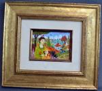 Alain THOMAS (né en 1942) Saltimbanques aux champs Acrylique sur panneau signée en bas à droite, titrée et contresignée au dos 8 x 11 cm