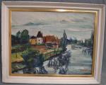 Aron HABER (1913-1939) Vue de village Huile sur toile signée en bas à droite 46 x 60.5 cm