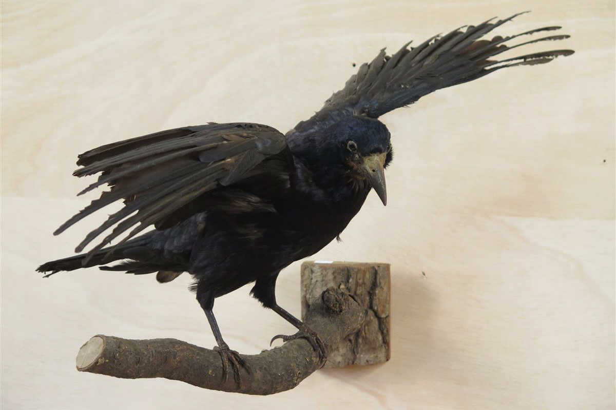 Corbeau freux (CH) : spécimen présenté ailes ouvertes. Corvus frugilegus