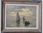 Georges LHERMITTE (1882-?) Les thoniers Huile sur isorel signée en bas à gauche 46.5 x 65 cm