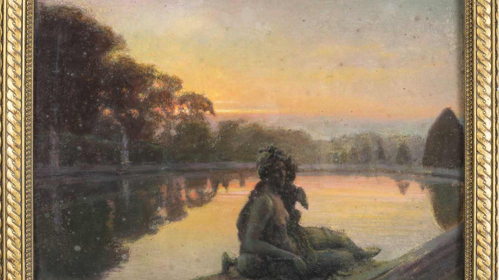 GUIRINI ( ? début XXème). " Dans le parc du château de Versailles ". Pastel sur carton, signé en bas au centre. A vue 43 x 60 cm. Taches. OH